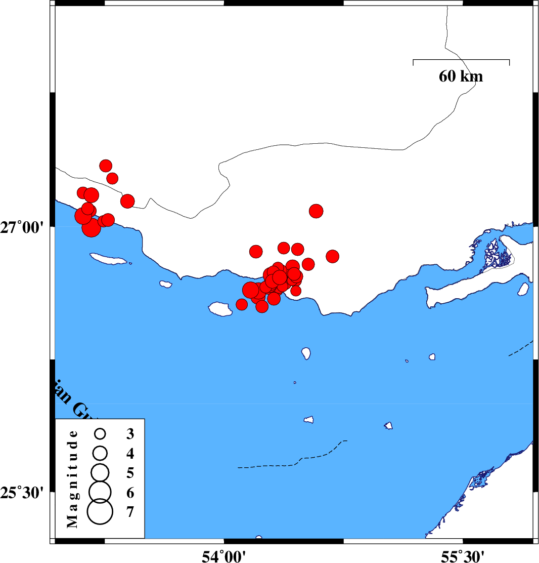 | 2022/06/21 | 07:05:05.4 | 11:35:05.4 | 26.692 | 54.303 | 19 | ML4 | Persian Gulf, 57 km South of Bastak | ||
