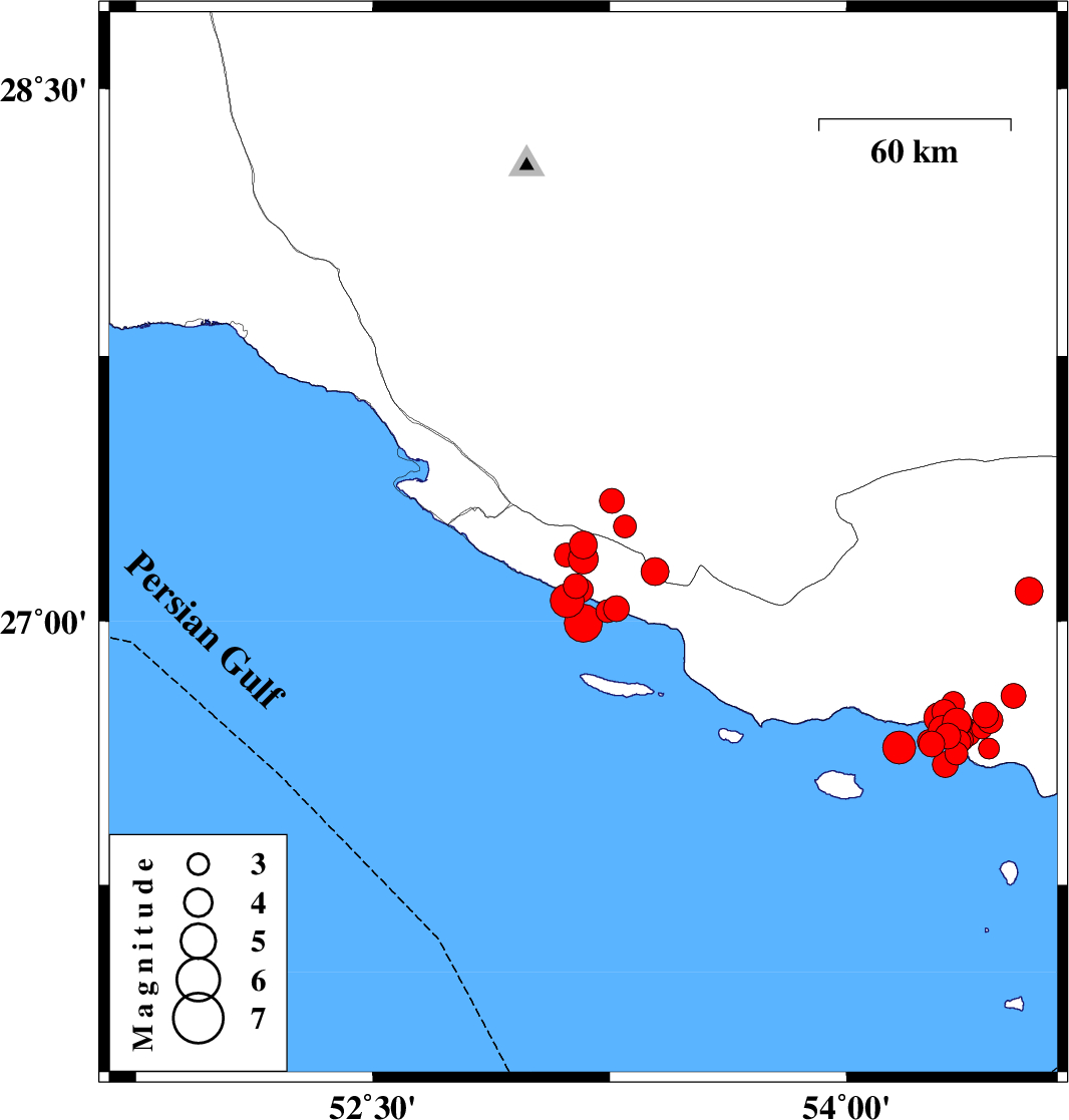 | 2022/06/22 | 02:27:46.4 | 06:57:46.4 | 27.029 | 53.242 | 10 | ML3.3 | Persian Gulf, 35 km South of Lamerd | ||