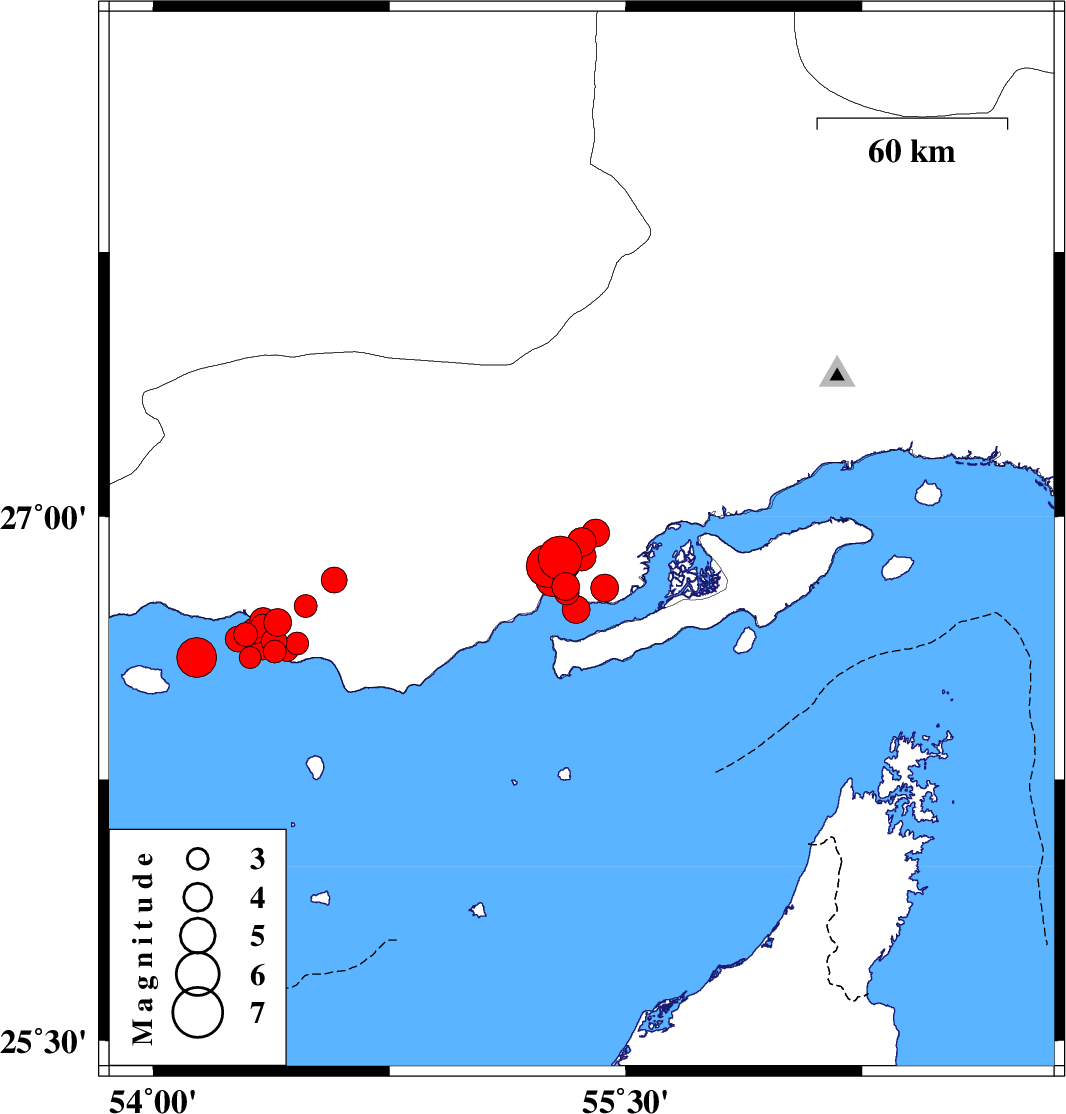 2022/06/24 23:47:23.3 04:17:23.3 26.65154.2712 ML3.7 Persian Gulf, 62 km South of Bastak