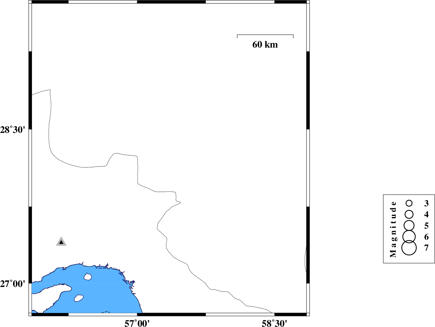 | 2022/07/01 | 19:28:31.4 | 23:58:31.4 | 28.21 | 57.349 | 12 | ML3.8 | Kerman Province, 45 km North-West of Kahnuj | ||
