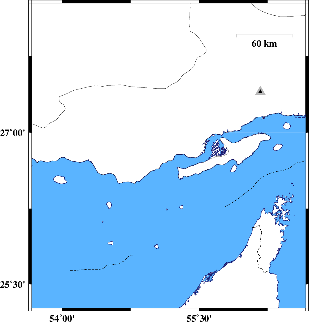 | 2022/06/24 | 01:27:26.6 | 05:57:26.6 | 26.657 | 54.354 | 12 | ML3.5 | Persian Gulf, 60 km South of Bastak | ||