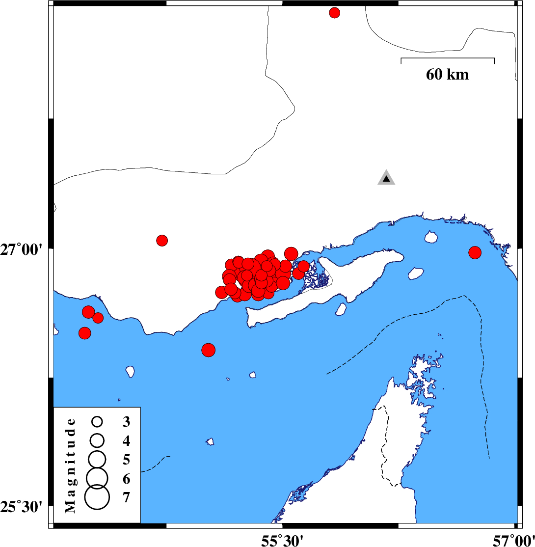 | 2022/07/04 | 04:14:48.7 | 08:44:48.7 | 26.756 | 55.343 | 8 | ML4 | Persian Gulf, 55 km North-East of Bandar-e lengeh | ||