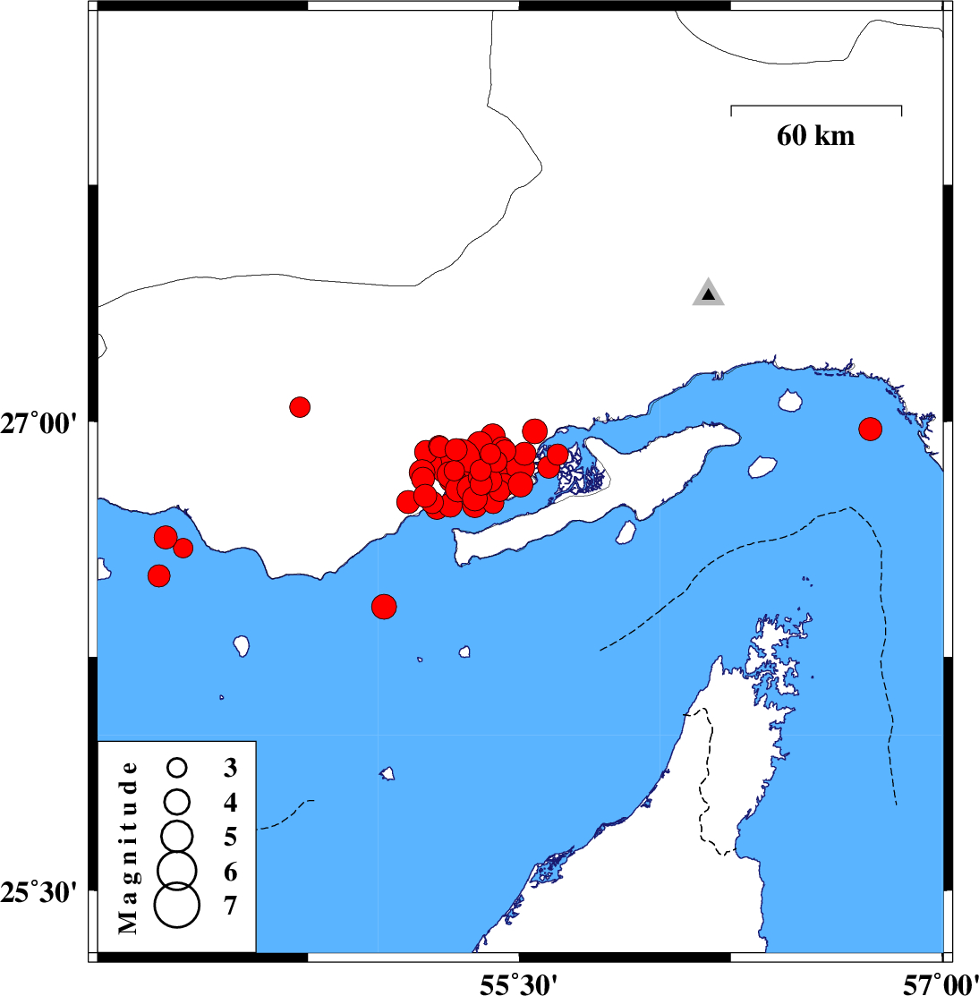 | 2022/07/01 | 00:44:42.6 | 05:14:42.6 | 26.598 | 54.307 | 21 | ML3.1 | Persian Gulf, 54 km -West of Bandar-e lengeh |