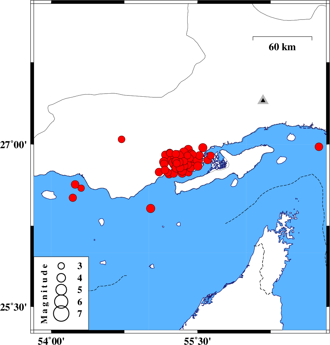 | 2022/07/01 | 00:44:42.6 | 05:14:42.6 | 26.598 | 54.307 | 21 | ML3.1 | Persian Gulf, 54 km -West of Bandar-e lengeh |