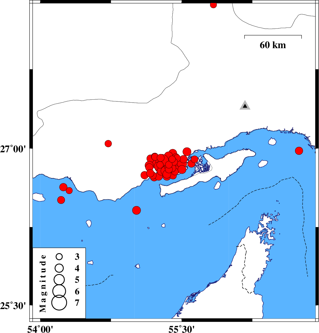 | 2022/07/04 | 04:14:48.7 | 08:44:48.7 | 26.756 | 55.343 | 8 | ML4 | Persian Gulf, 55 km North-East of Bandar-e lengeh | ||