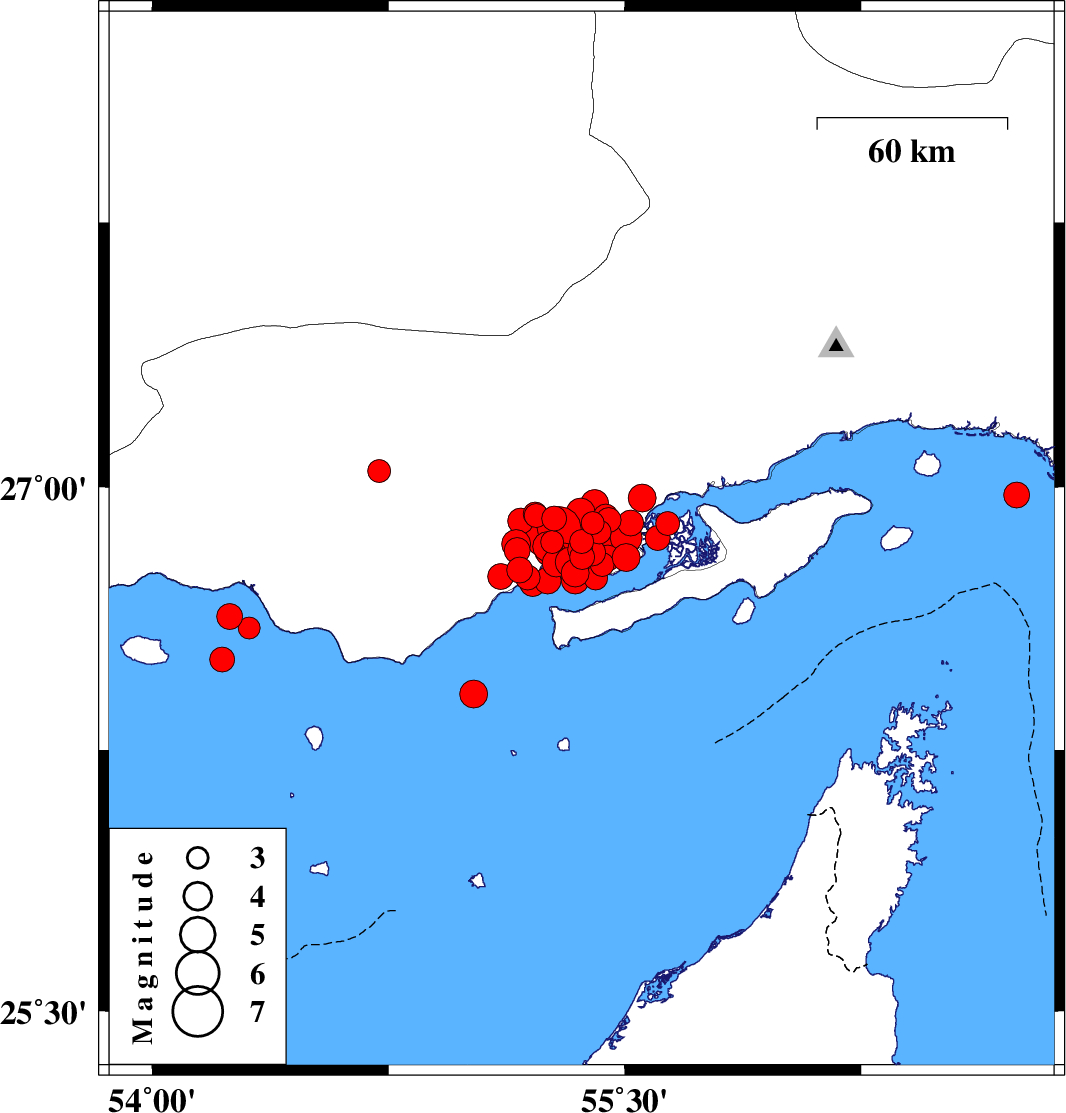 | 2022/07/01 | 00:44:42.6 | 05:14:42.6 | 26.598 | 54.307 | 21 | ML3.1 | Persian Gulf, 54 km -West of Bandar-e lengeh |