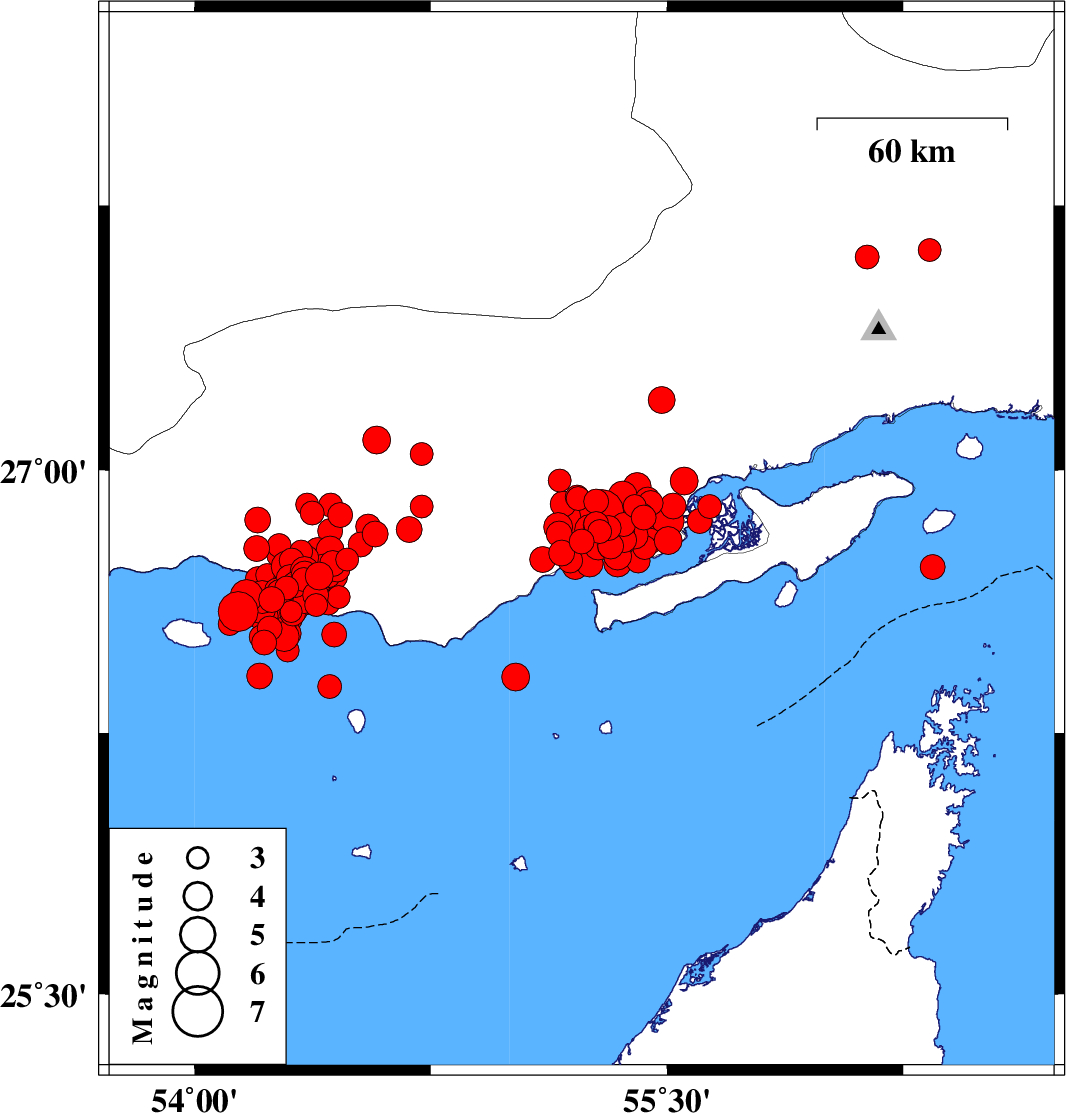 | 2022/06/21 | 07:05:05.4 | 11:35:05.4 | 26.692 | 54.303 | 19 | ML4 | Persian Gulf, 57 km South of Bastak | ||
