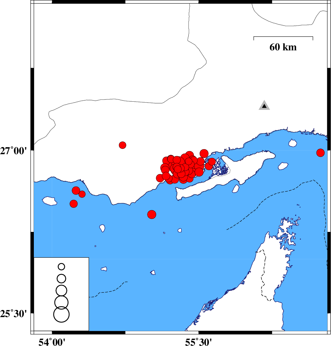 | 2022/07/01 | 00:44:42.6 | 05:14:42.6 | 26.598 | 54.307 | 21 | ML3.1 | Persian Gulf, 54 km -West of Bandar-e lengeh |