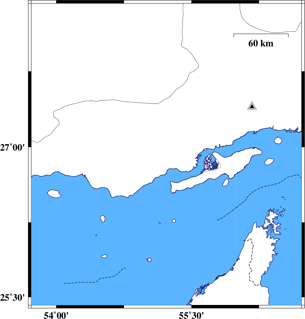 | 2022/06/16 | 20:53:11.2 | 01:23:11.2 | 26.659 | 54.345 | 20 | ML3.5 | Persian Gulf, 60 km South of Bastak | ||