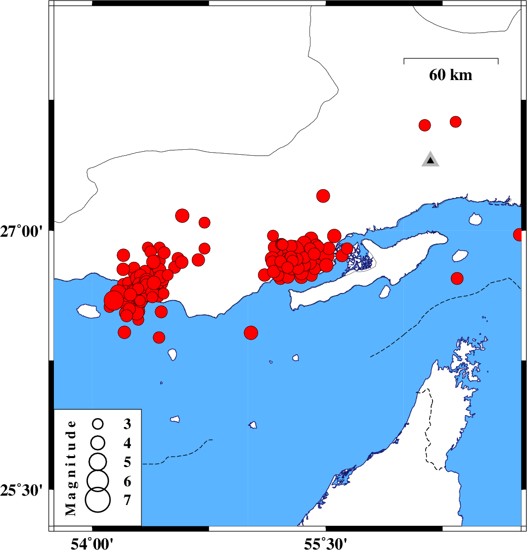 | 2022/06/21 | 07:05:05.4 | 11:35:05.4 | 26.692 | 54.303 | 19 | ML4 | Persian Gulf, 57 km South of Bastak | ||