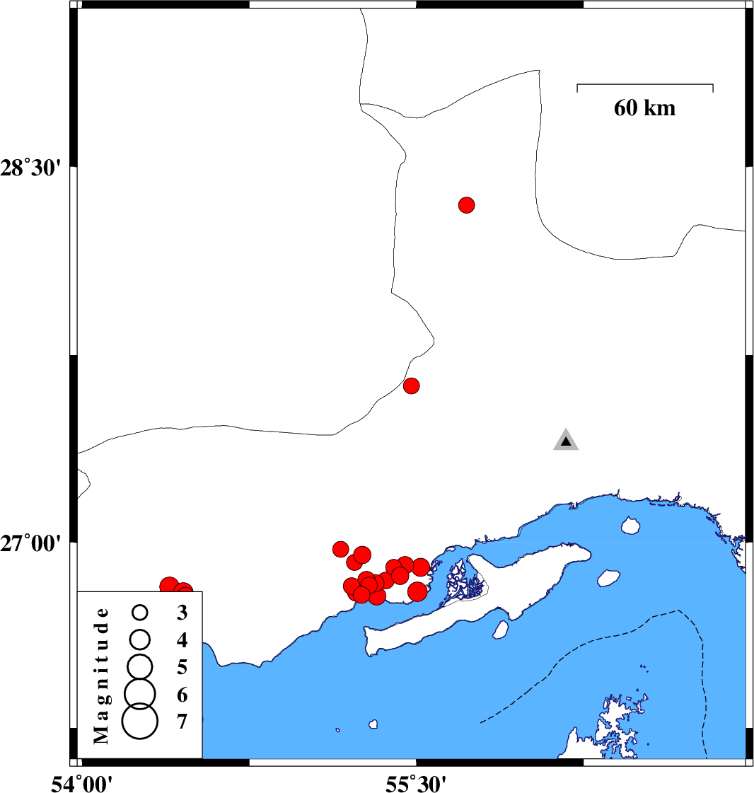 | 2022/07/06 | 02:21:01.3 | 06:51:01.3 | 26.784 | 55.321 | 12 | ML3.7 | , 55 km North-East of Bandar-e lengeh | ||