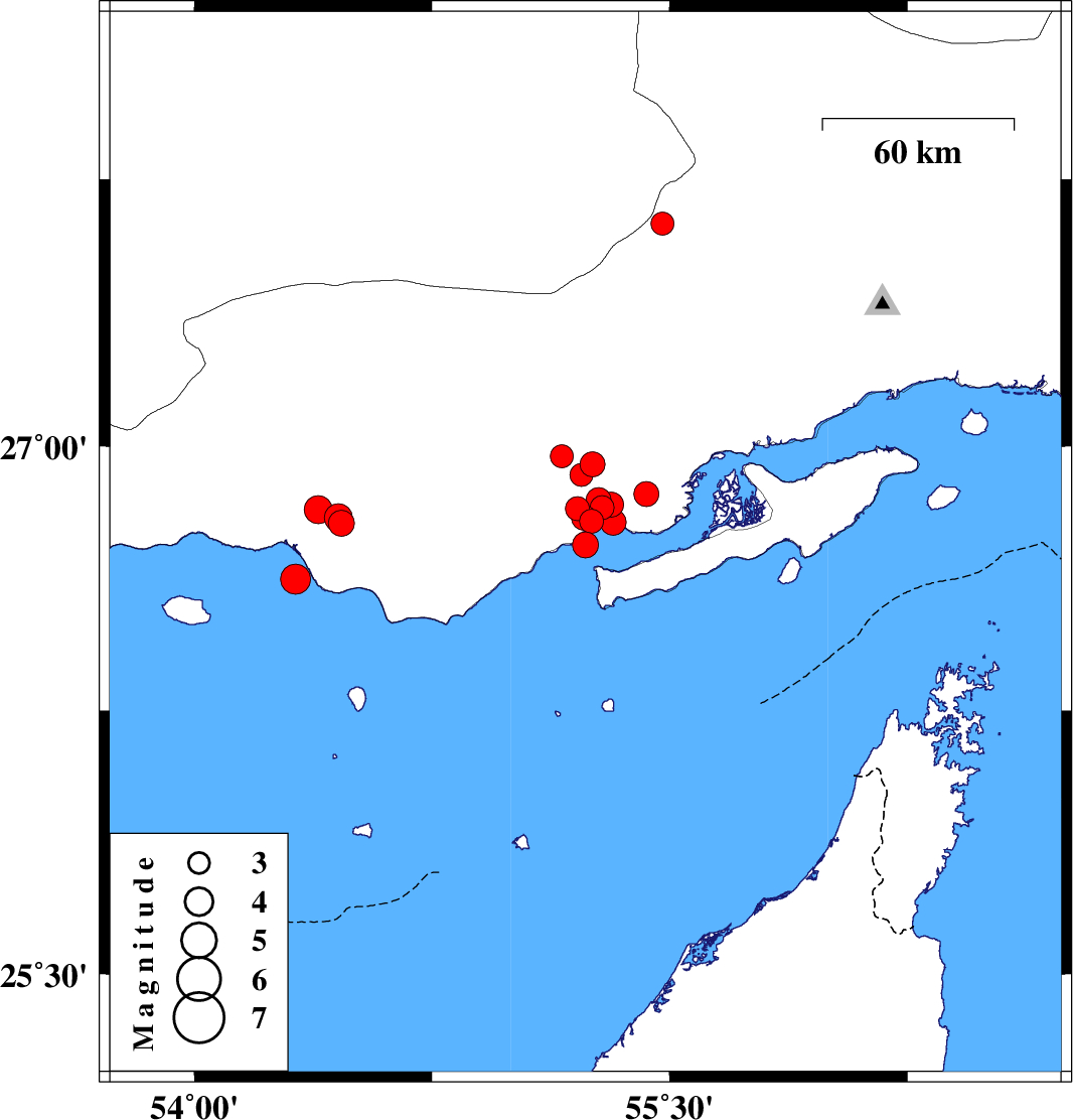 | 2022/07/06 | 02:21:01.3 | 06:51:01.3 | 26.784 | 55.321 | 12 | ML3.7 | , 55 km North-East of Bandar-e lengeh |