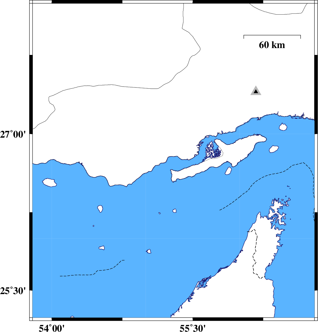 | 2022/06/16 | 20:53:11.2 | 01:23:11.2 | 26.659 | 54.345 | 20 | ML3.5 | Persian Gulf, 60 km South of Bastak | ||