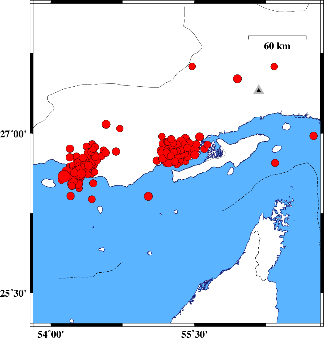 | 2022/06/19 | 09:24:06.4 | 13:54:06.4 | 26.659 | 54.261 | 12 | ML3.4 | Persian Gulf, 61 km South-West of Bastak | ||