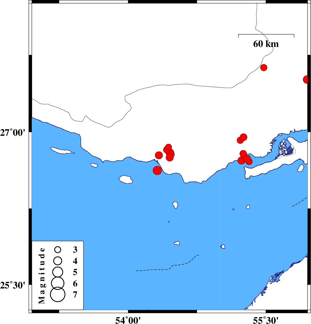 | 2022/07/10 | 07:00:14.7 | 11:30:14.7 | 26.919 | 55.222 | 12 | ML3.2 | Hormozgan Province, 57 km North-East of Bandar-e lengeh |