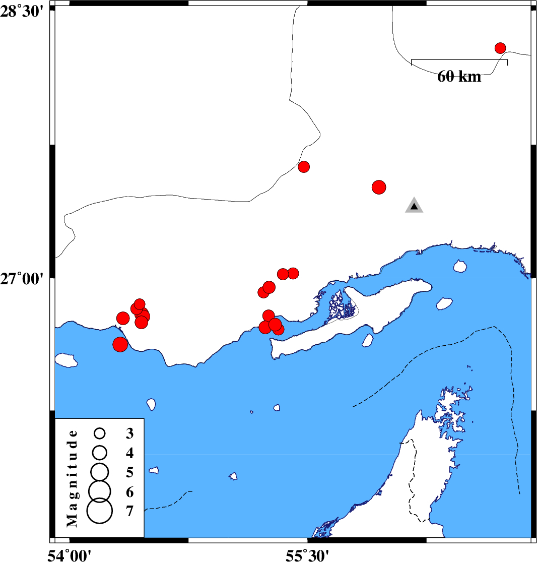 | 2022/07/17 | 19:57:55.6 | 00:27:55.6 | 27.026 | 55.408 | 17 | ML3.2 | Hormozgan Province, 85 km -West of Qeshm | ||