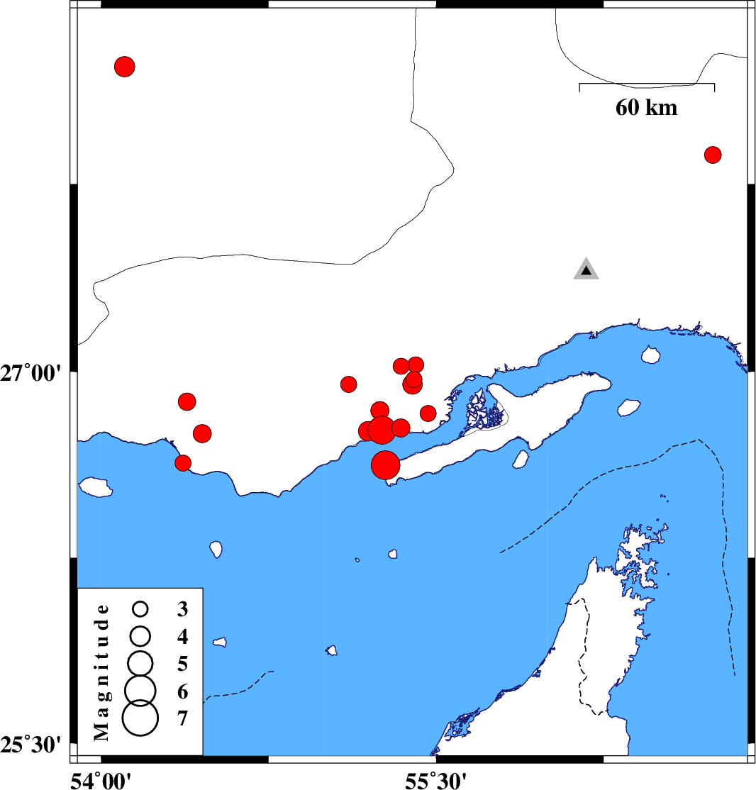 | 2022/07/23 | 21:05:25.1 | 01:35:25.1 | 26.831 | 55.464 | 12 | ML3.2 | Hormozgan Province, 70 km North-East of Bandar-e lengeh | ||