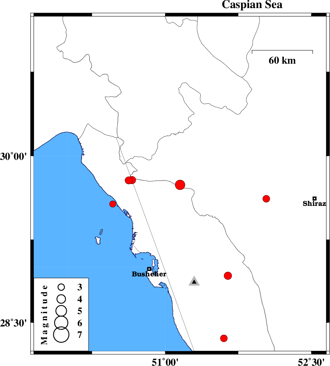 | 2022/08/06 | 03:43:59.5 | 08:13:59.5 | 29.784 | 50.66 | 12 | ML3.5 | Bushehr Province, 27 km North-East of Bandar-e genaveh | ||