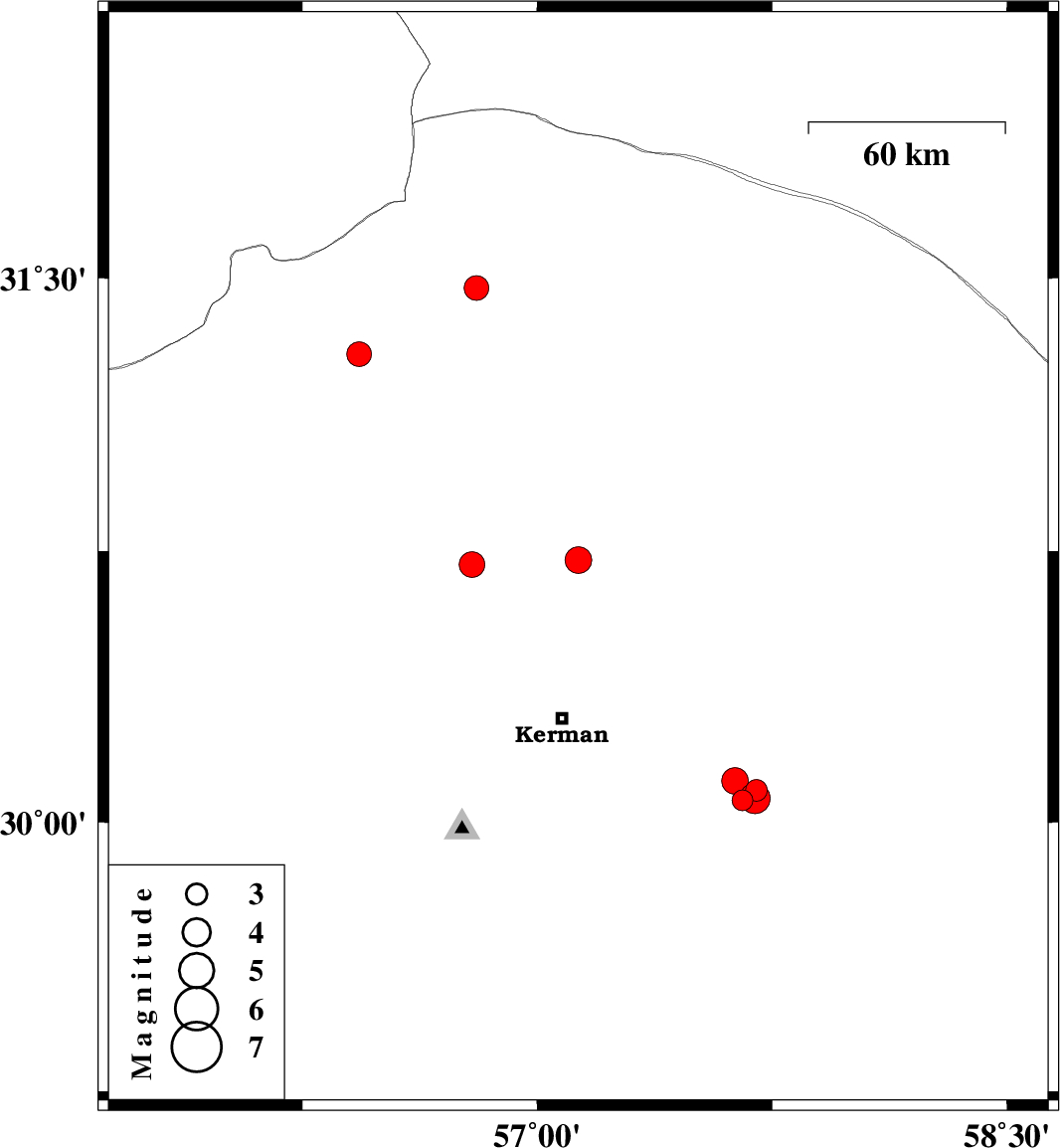 | 2022/07/17 | 11:13:39.6 | 15:43:39.6 | 30.061 | 57.655 | 12 | ML3 | Kerman Province, 61 km South-East of Kerman | ||