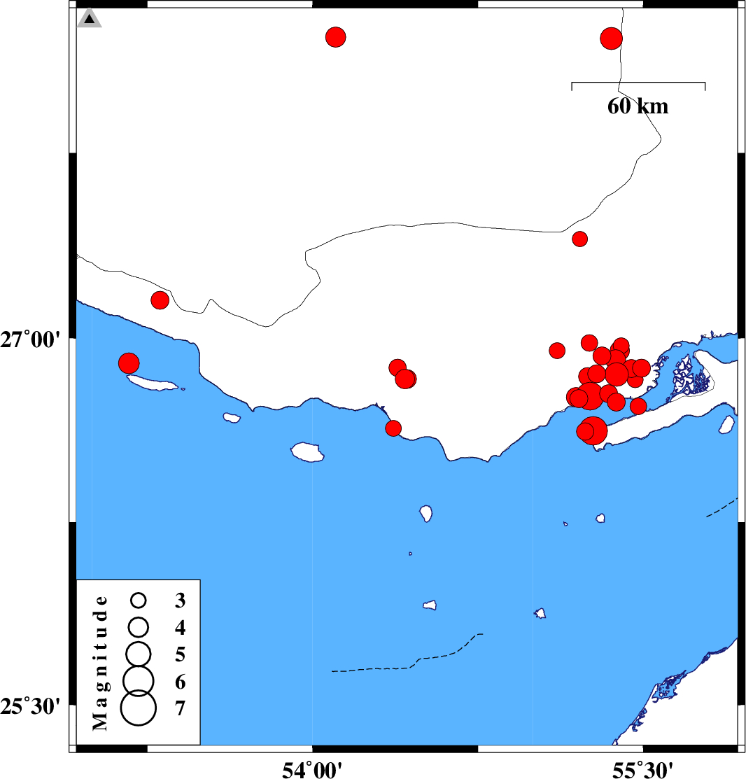 2022/07/19 15:27:12.6 19:57:12.6 26.84355.24812 ML3.7 Hormozgan Province, 53 km North-East of Bandar-e lengeh