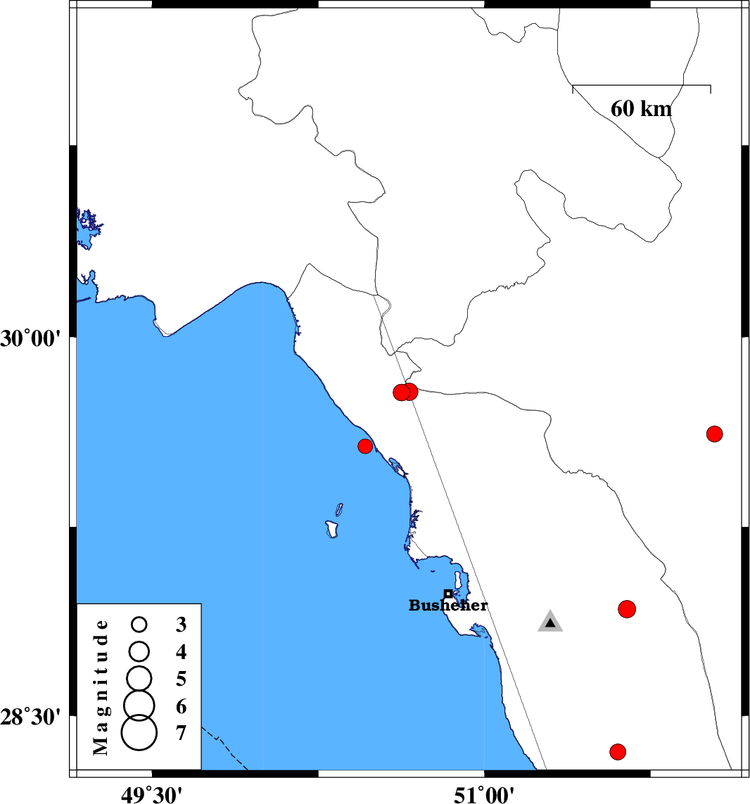 | 2022/07/23 | 16:46:01.0 | 21:16:01.0 | 29.569 | 50.462 | 12 | ML3 | Persian Gulf, 5 km of Bandar-e genaveh | ||