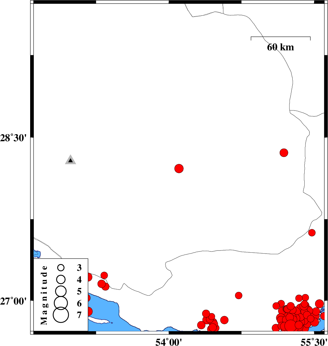 | 2022/06/26 | 05:38:17.1 | 10:08:17.1 | 27.232 | 53.334 | 12 | ML3.3 | Fars Province, 20 km South-East of Lamerd | ||