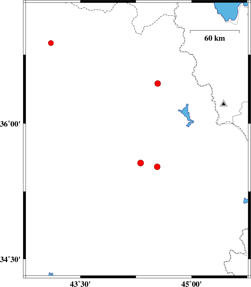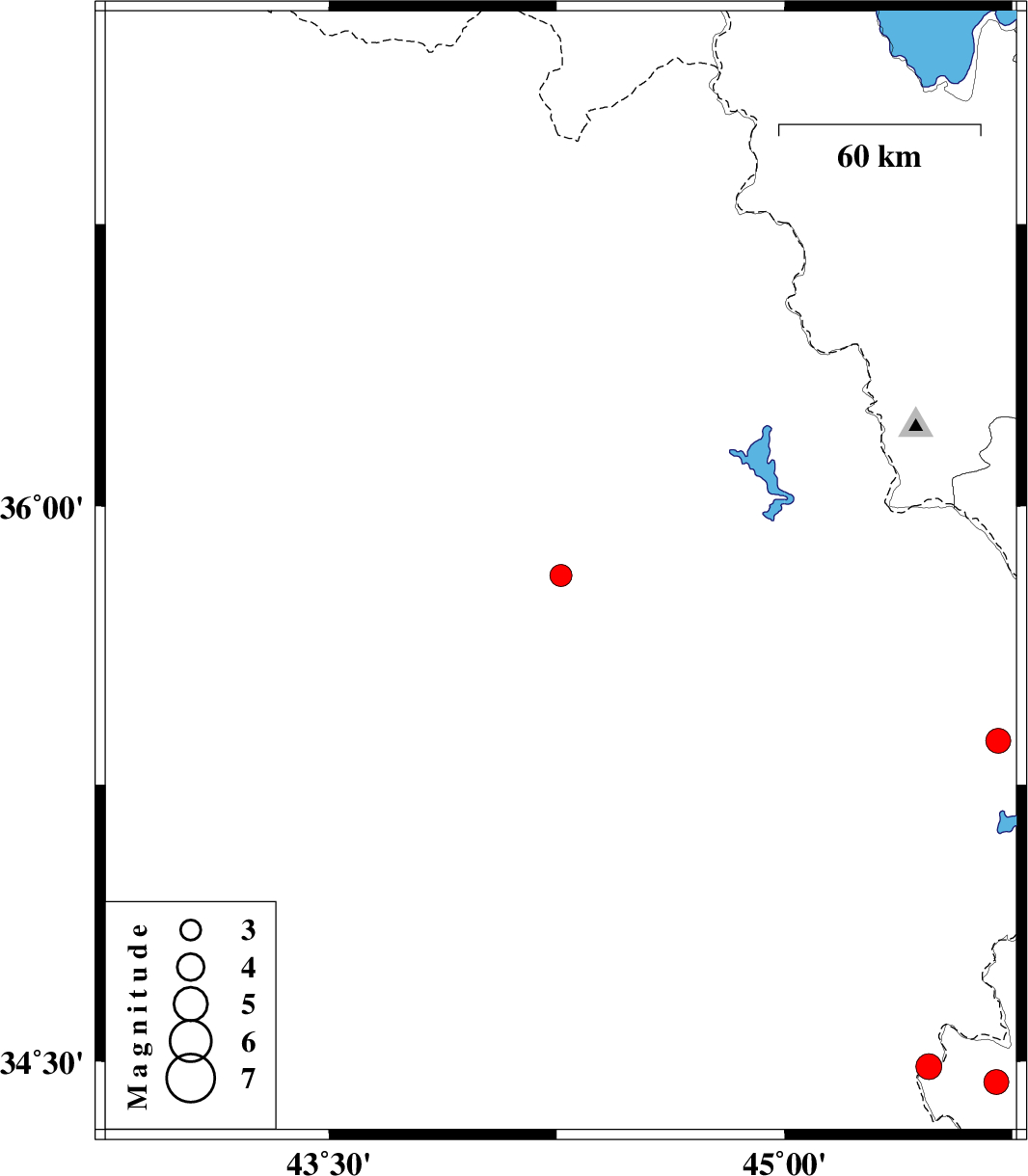 | 2022/08/25 | 04:28:18.5 | 08:58:18.5 | 35.814 | 44.264 | 12 | ML3.2 | Iraq | ||