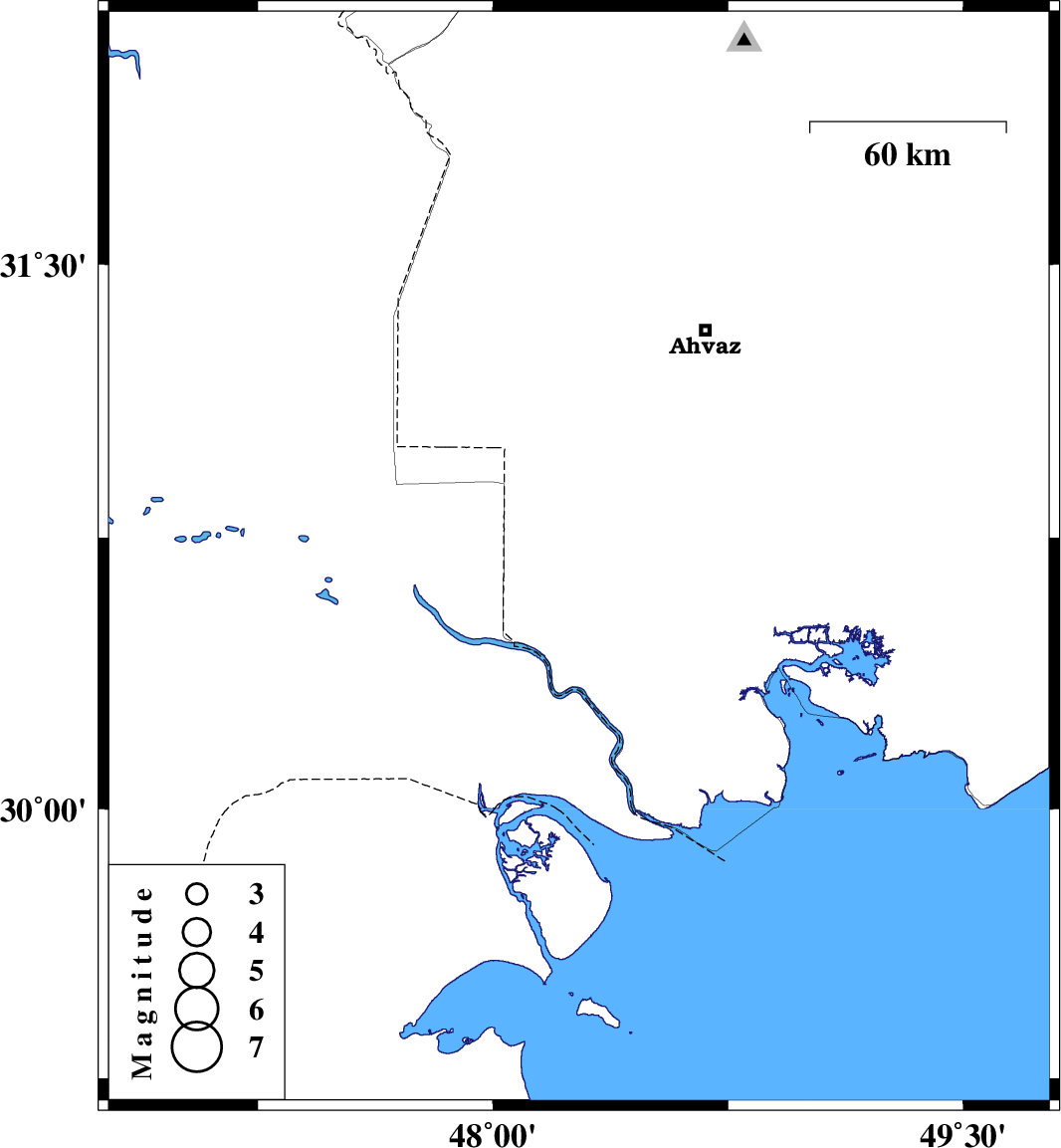 | 2022/08/25 | 19:58:31.1 | 00:28:31.1 | 30.69 | 48.274 | 12 | ML3.5 | Khoozestan Province, 30 km North of Khorramshahr |