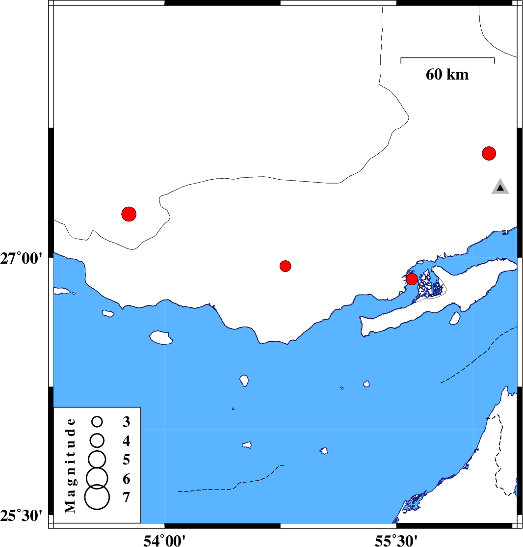 | 2022/08/26 | 03:05:54.1 | 07:35:54.1 | 27.601 | 56.099 | 7 | ML4 | Hormozgan Province, 50 km North-West of Bandar-e abbas | ||