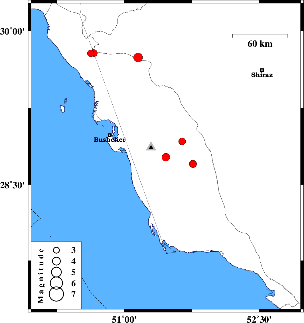 | 2022/08/06 | 03:43:59.5 | 08:13:59.5 | 29.784 | 50.66 | 12 | ML3.5 | Bushehr Province, 27 km North-East of Bandar-e genaveh | ||