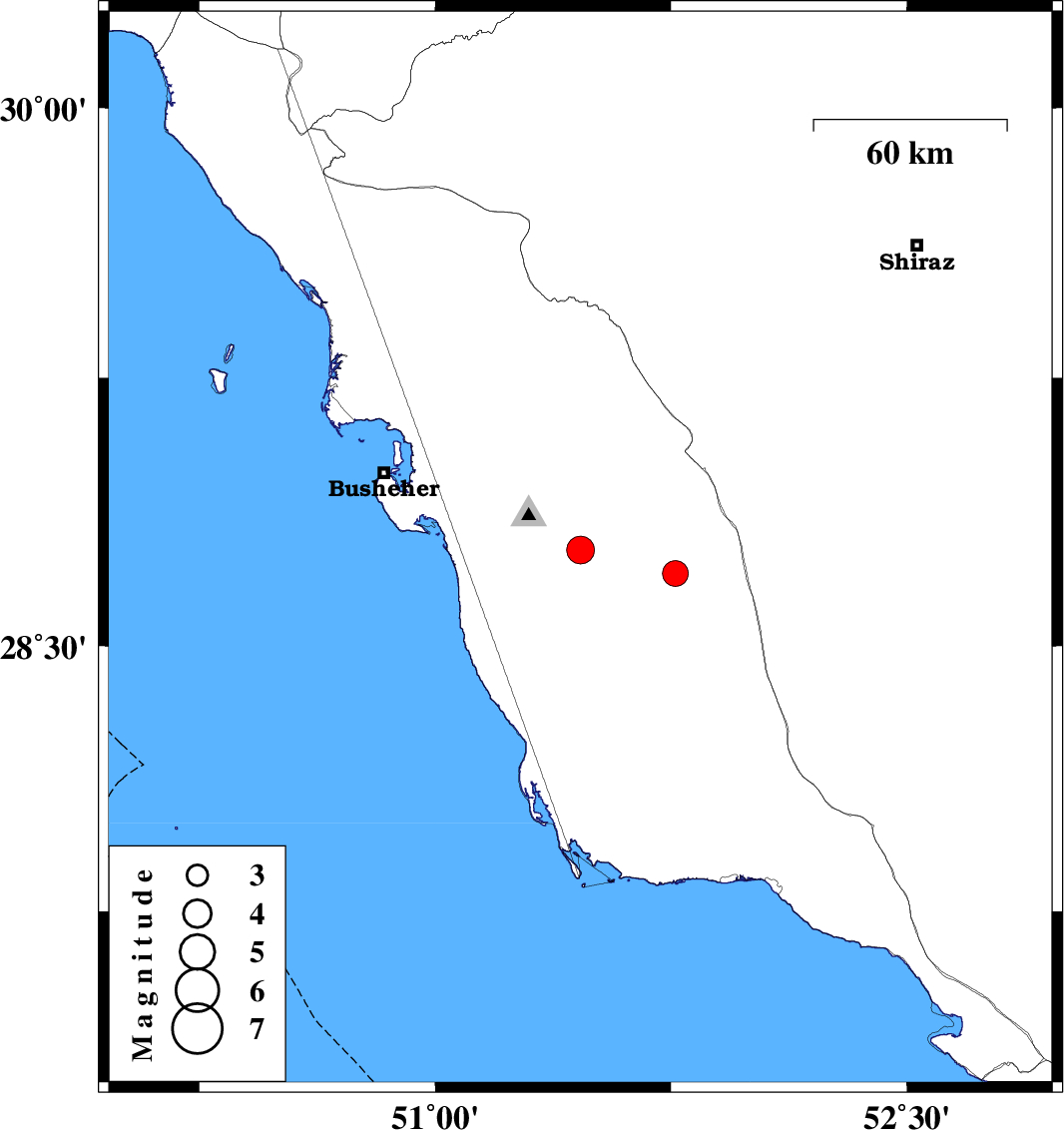 | 2022/08/28 | 23:06:31.1 | 03:36:31.1 | 28.768 | 51.462 | 12 | ML3.9 | Bushehr Province, 16 km North of Khormog | ||