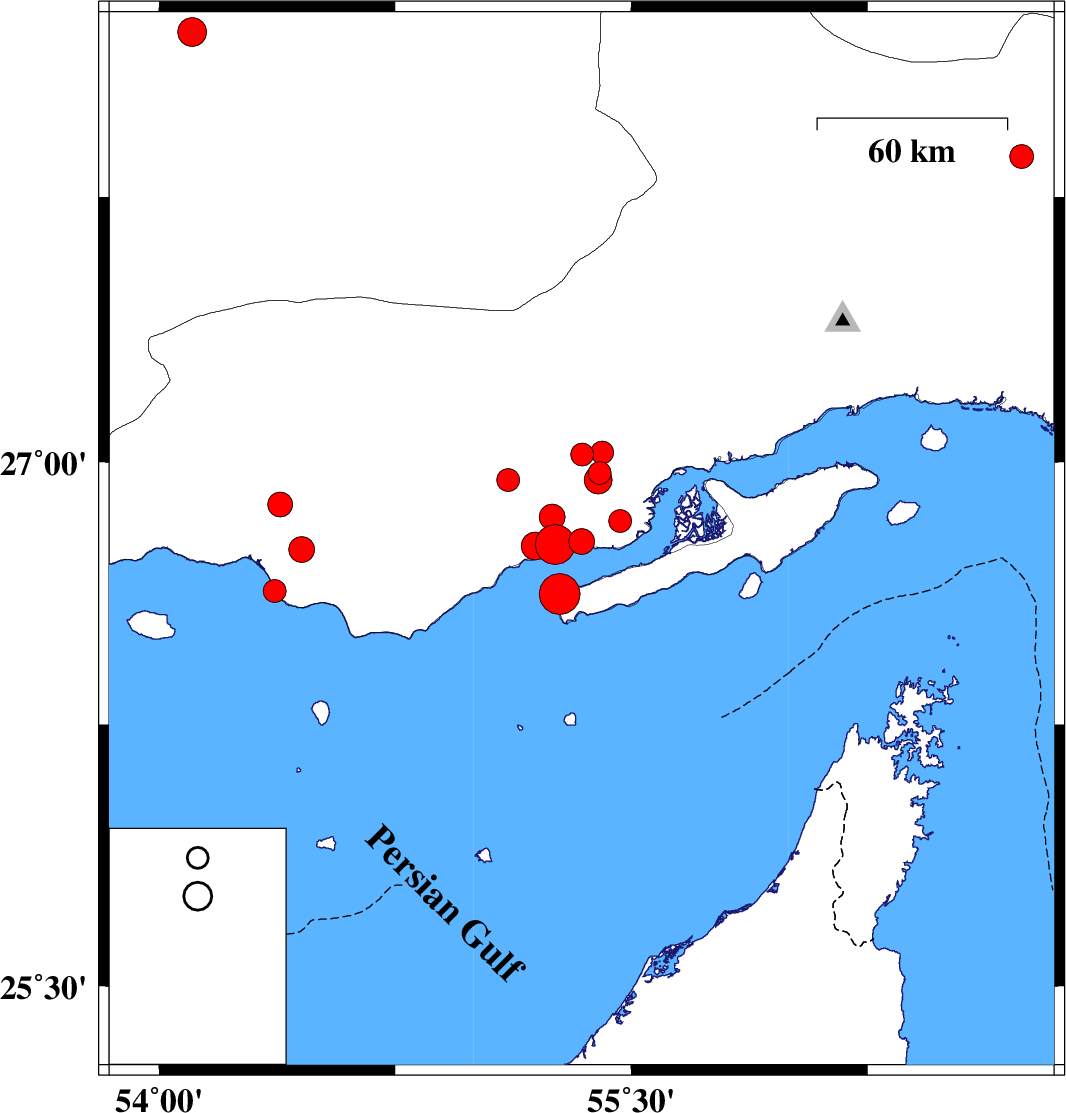 | 2022/07/17 | 19:57:55.6 | 00:27:55.6 | 27.026 | 55.408 | 17 | ML3.2 | Hormozgan Province, 85 km -West of Qeshm | ||