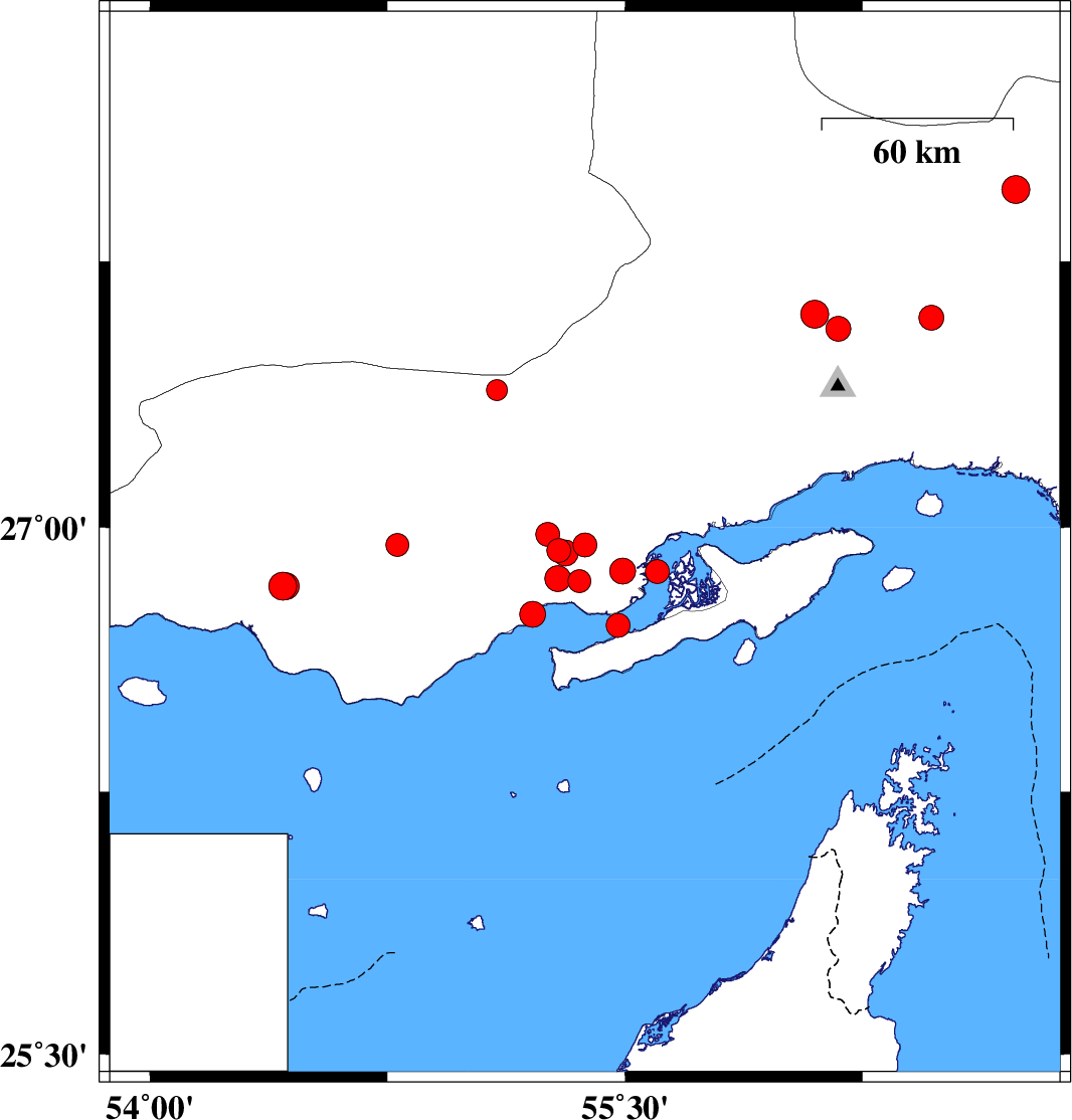 | 2022/08/30 | 20:20:49.6 | 00:50:49.6 | 26.848 | 55.355 | 12 | ML3.3 | Hormozgan Province, 62 km North-East of Bandar-e lengeh | ||