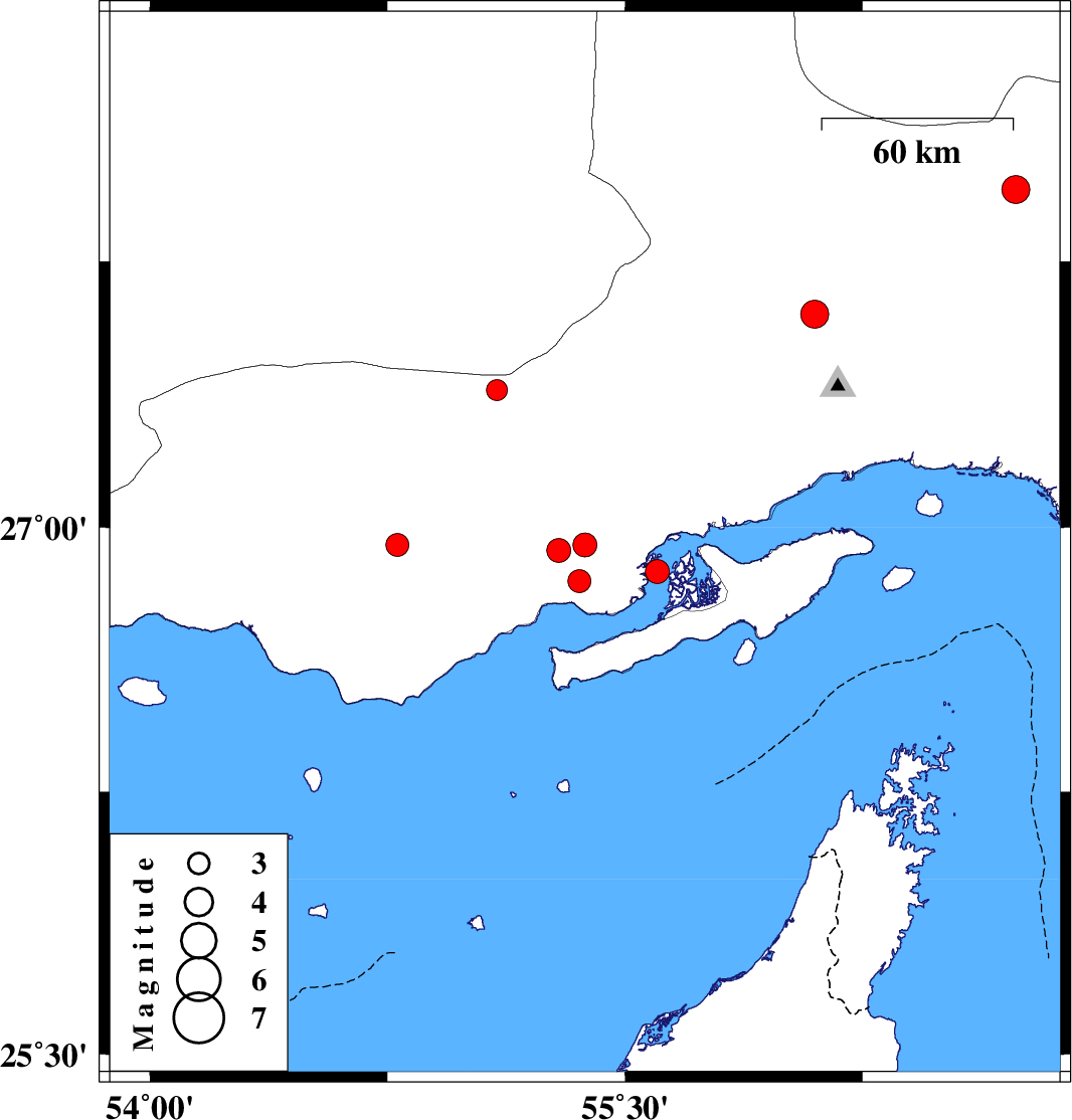 | 2022/08/26 | 03:05:54.1 | 07:35:54.1 | 27.601 | 56.099 | 7 | ML4 | Hormozgan Province, 50 km North-West of Bandar-e abbas | ||