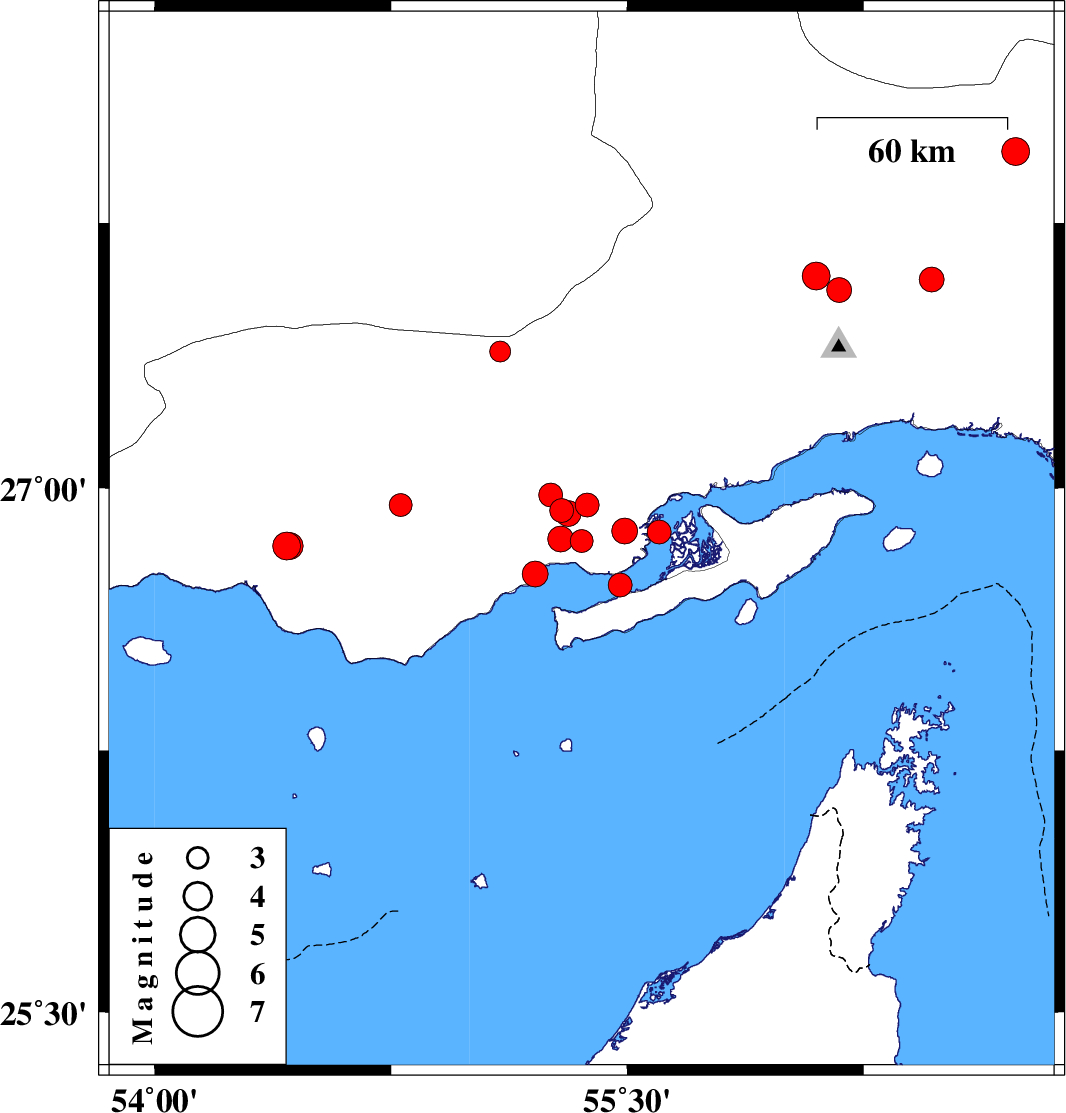 | 2022/08/26 | 03:05:54.1 | 07:35:54.1 | 27.601 | 56.099 | 7 | ML4 | Hormozgan Province, 50 km North-West of Bandar-e abbas | ||