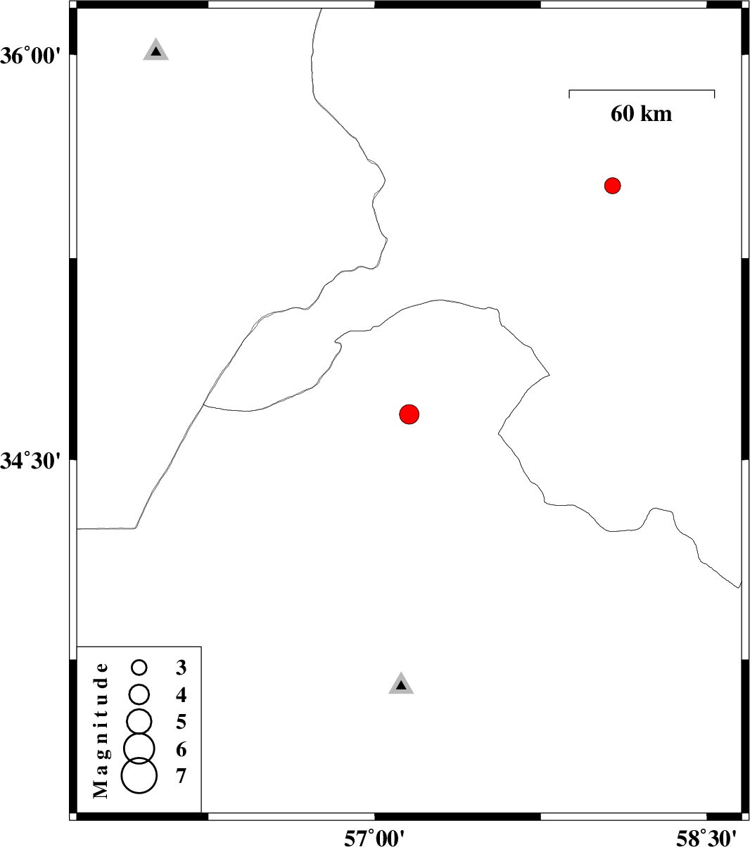 2022/08/30 | 03:14:34.3 | 07:44:34.3 | 35.517 | 58.074 | 16 | ML3.2 | Khorasan(center) Province, 31 km North-East of Bardeskan |