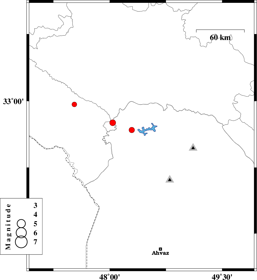 | 2022/08/09 | 08:46:20.1 | 13:16:20.1 | 32.517 | 48.681 | 8 | ML3.4 | Khoozestan Province, 32 km -East of Andimeshk | ||