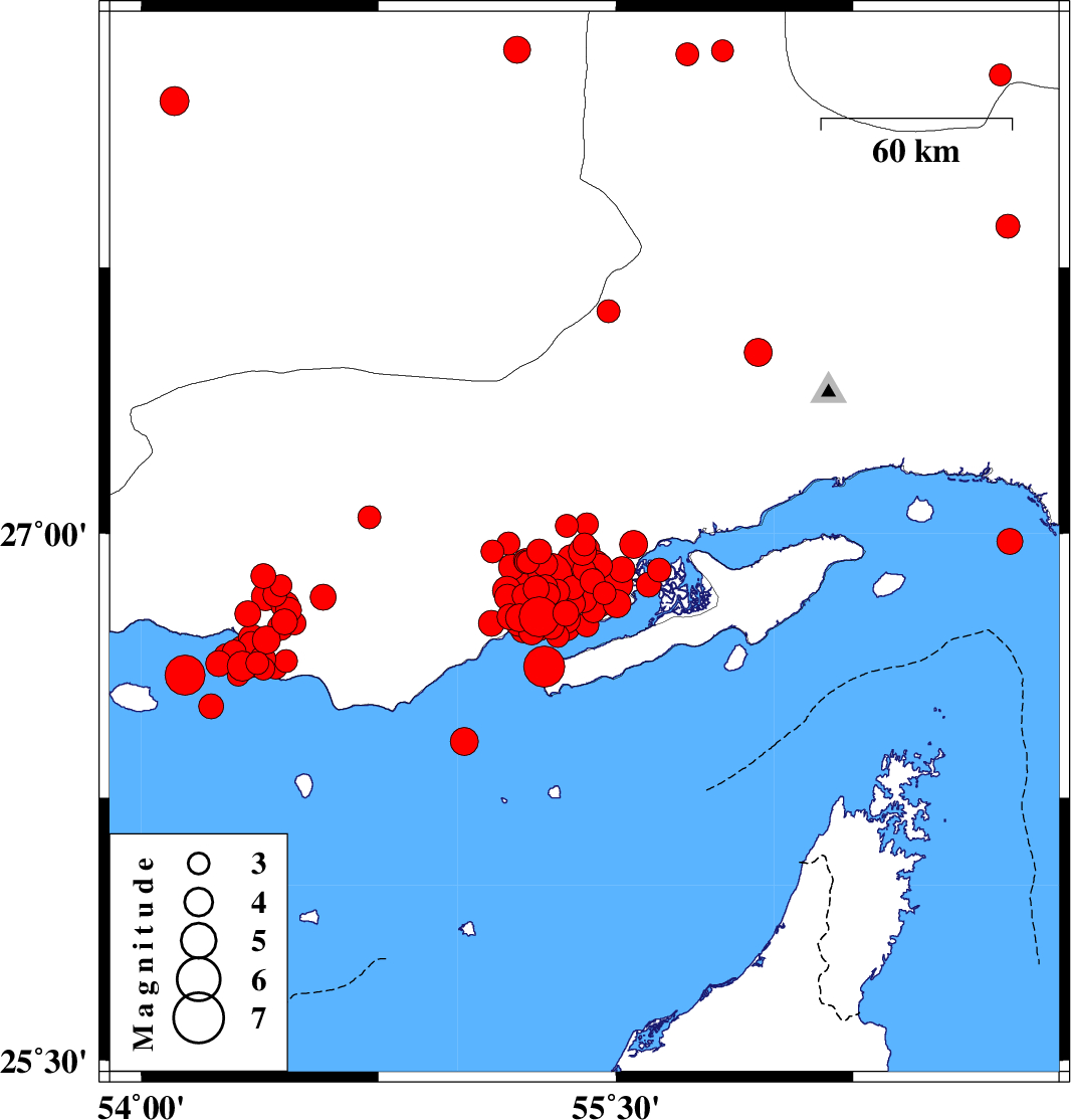 | 2022/06/25 | 04:19:03.0 | 08:49:03.0 | 26.638 | 54.457 | 12 | ML3.3 | Hormozgan Province, 41 km North-West of Bandar-e lengeh | ||