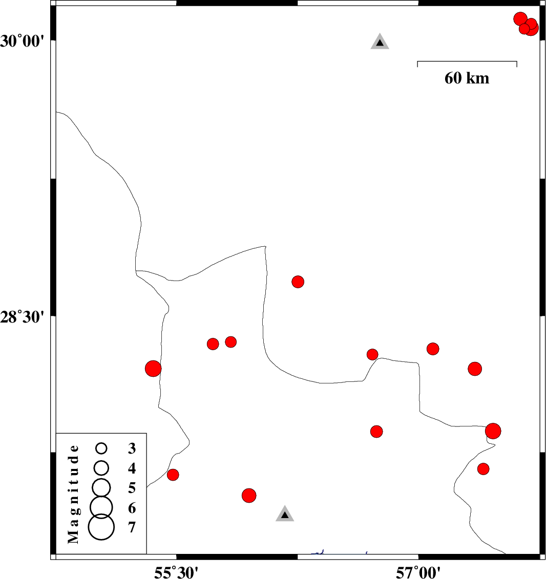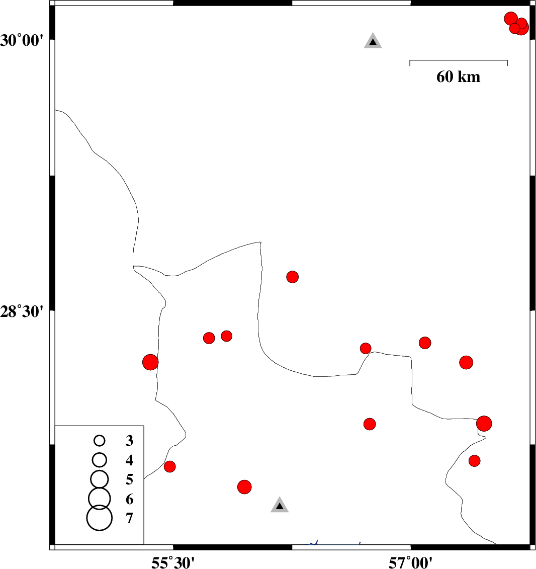 | 2022/07/13 | 12:26:52.6 | 16:56:52.6 | 28.289 | 56.714 | 9 | ML3.1 | Kerman Province, 80 km -East of Hajiabad | ||