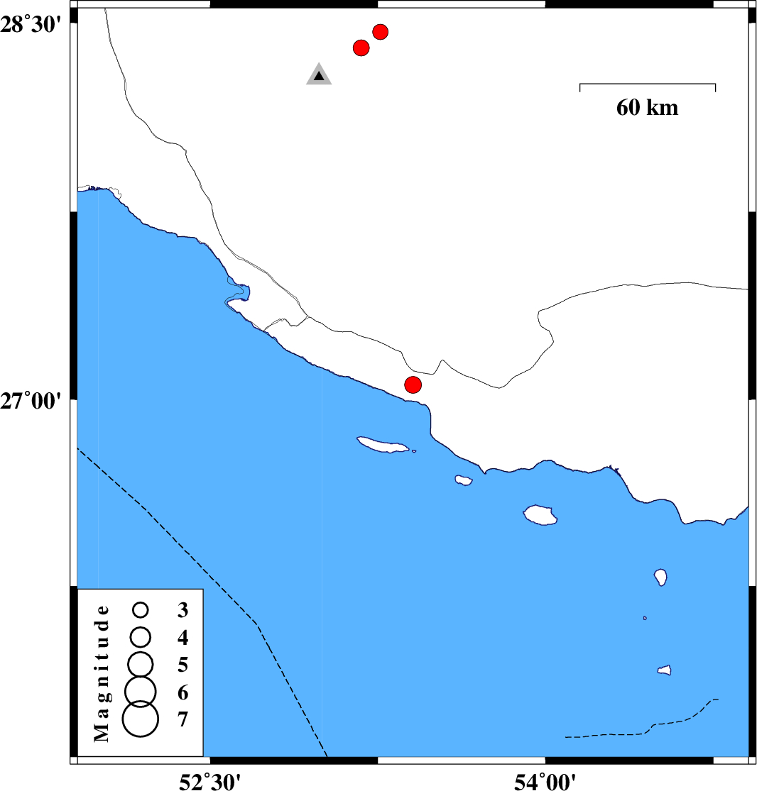 | 2022/09/04 | 22:24:26.8 | 02:54:26.8 | 28.401 | 53.175 | 11 | ML3.3 | Fars Province, 16 km -East of Qir va Karzin |