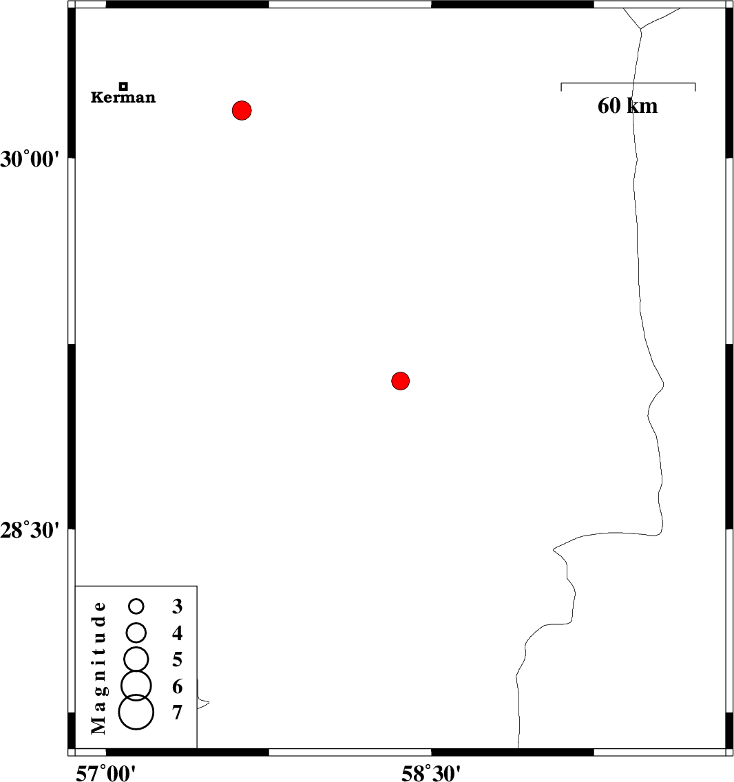 | 2022/09/07 | 08:00:14.1 | 12:30:14.1 | 29.101 | 58.357 | 12 | ML3.6 | Kerman Province, 1 km of Bam | ||