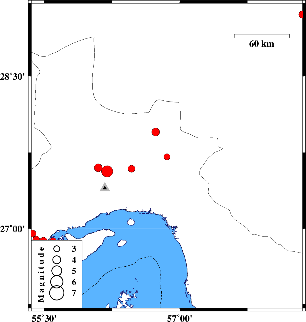 | 2022/08/26 | 03:05:54.1 | 07:35:54.1 | 27.601 | 56.099 | 7 | ML4 | Hormozgan Province, 50 km North-West of Bandar-e abbas | ||