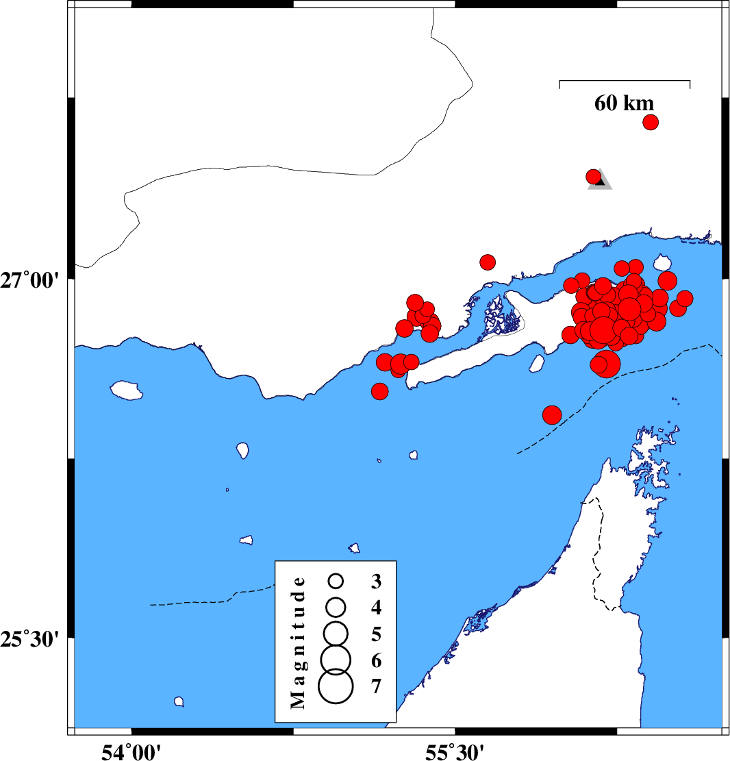 | 2022/07/04 | 04:14:48.7 | 08:44:48.7 | 26.756 | 55.343 | 8 | ML4 | Persian Gulf, 55 km North-East of Bandar-e lengeh | ||