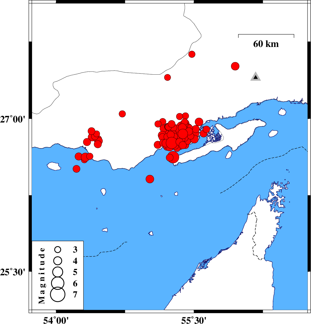 | 2022/07/01 | 22:43:51.4 | 03:13:51.4 | 26.797 | 55.433 | 15 | ML4 | Hormozgan Province, 65 km North-East of Bandar-e lengeh | ||