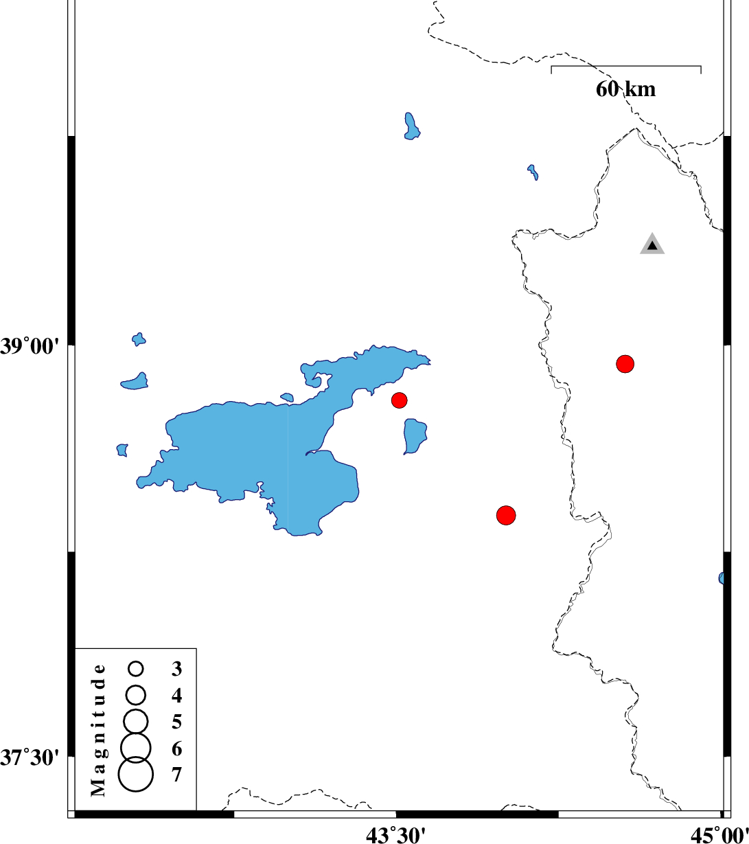 | 2022/09/05 | 08:49:16.2 | 13:19:16.2 | 38.383 | 44.008 | 12 | ML3.9 | Turkey, 70 km North-West of Salmas | ||
