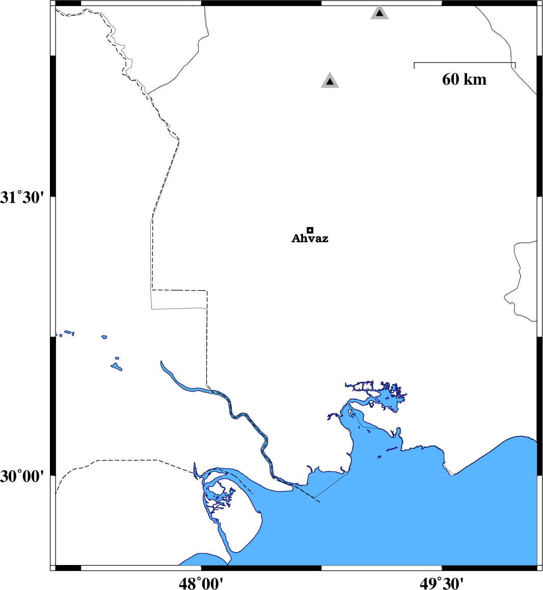 Map Region : lat:29.513-32.513  lon:47.092-50.092
