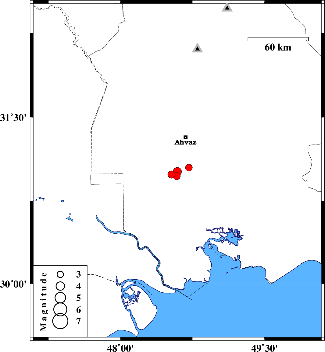 | 2022/09/11 | 15:19:06.7 | 19:49:06.7 | 31.049 | 48.713 | 12 | ML3.2 | Khoozestan Province, 30 km South of Ahvaz | ||