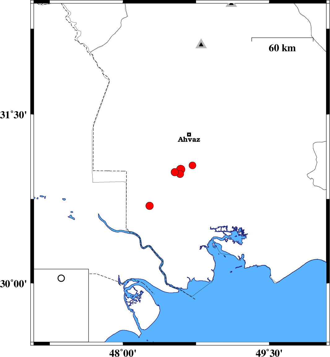 | 2022/08/25 | 19:58:31.1 | 00:28:31.1 | 30.69 | 48.274 | 12 | ML3.5 | Khoozestan Province, 30 km North of Khorramshahr |