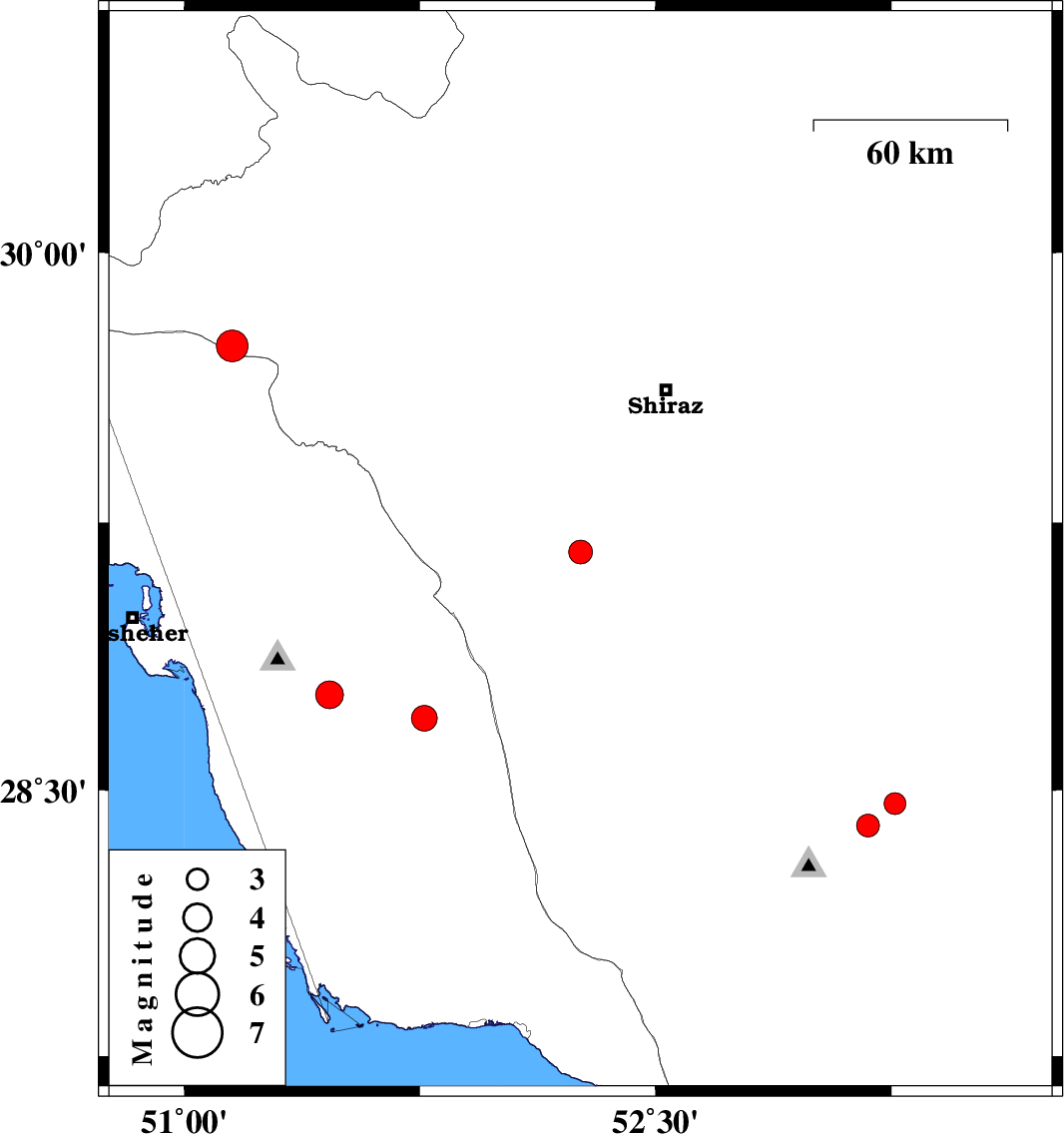 | 2022/09/11 | 09:58:39.3 | 14:28:39.3 | 29.167 | 52.261 | 8 | ML3.4 | Fars Province, 37 km North-East of Farashband | ||