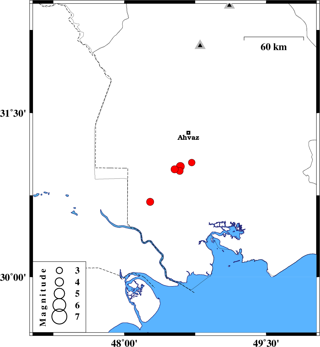 | 2022/09/11 | 15:19:06.7 | 19:49:06.7 | 31.049 | 48.713 | 12 | ML3.2 | Khoozestan Province, 30 km South of Ahvaz | ||